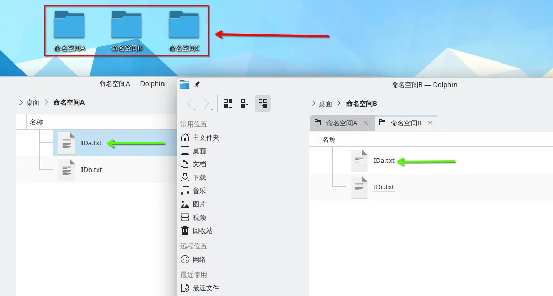 • 右侧的 ID a.txt 表示为 命名空间 B:ID a.txt