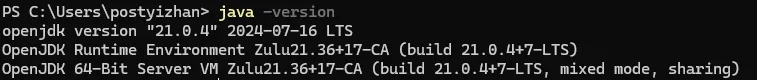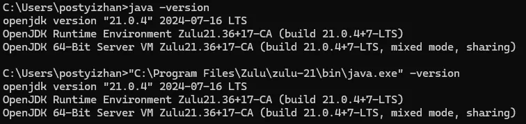 在此处,java 等同于 "C:\Program Files\Zulu\zulu-21\bin\java.exe"