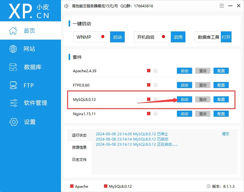 安装好后在首页启动 MySQL
